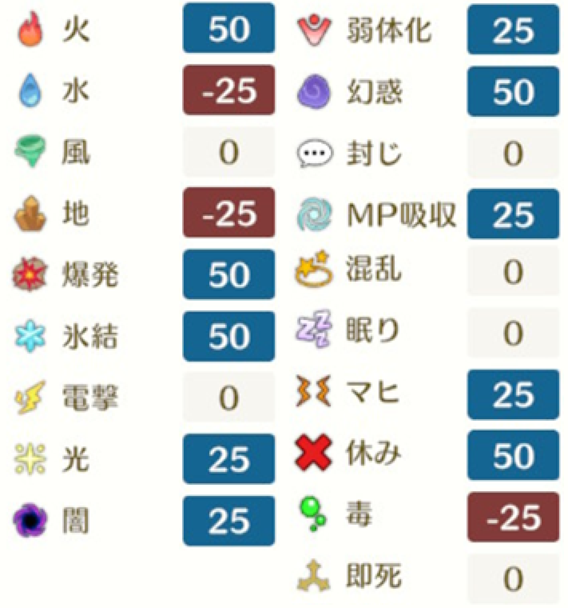 | 光ガード大 | 光属性の耐性+50 | 100 |