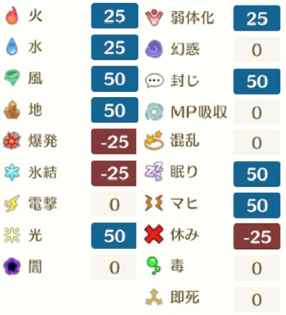 | 火ブレイク大 | 火属性攻撃時、敵の火属性耐性-50 | 1 |