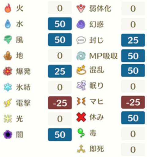 サタンフーラーの各種耐性