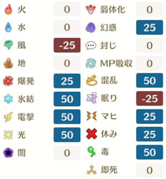 シールドオーガの各種耐性