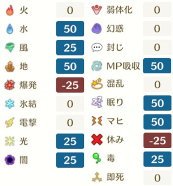 さそりアーマーの各種耐性