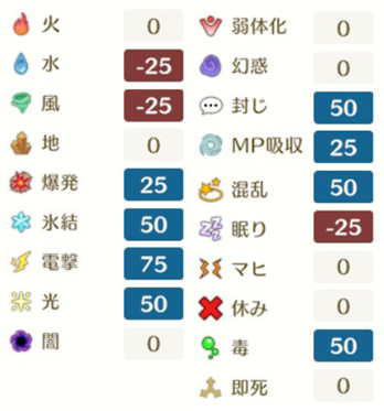 相手の全耐性を少し下げる