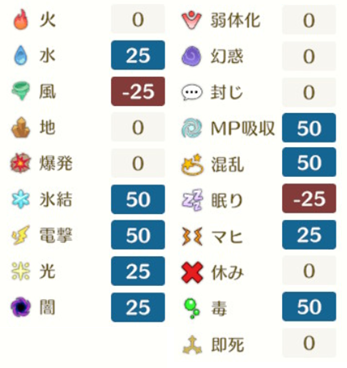 | 弱体化ブレイク大 | 敵の攻撃力・守備力・素早さ・賢さ等を 下げる弱体化攻撃時、敵の弱体化耐性-50 |